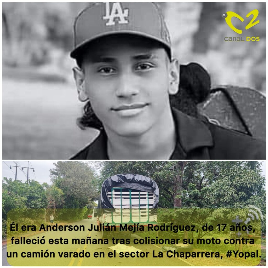 Un joven de 17 años falleció en un accidente de tránsito ocurrido en la mañana del 27 de octubre de 2024, en la vía Yopal – Paz de Ariporo, cerca del kilómetro 27, en inmediaciones del centro poblado La Chaparrera. El accidente involucró a un camión y una motocicleta.