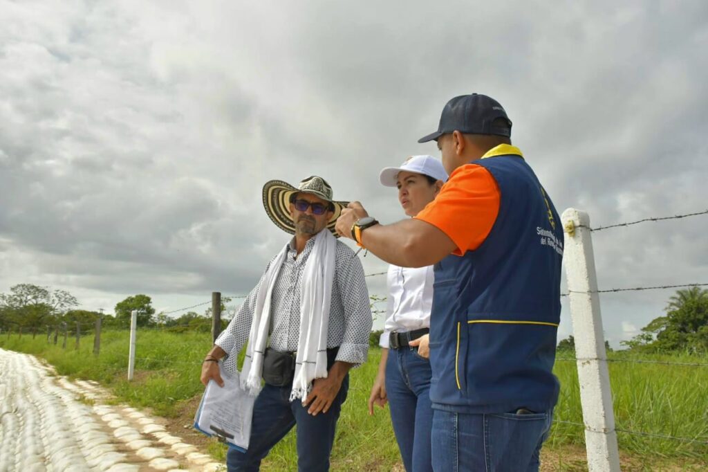El Juzgado Primero Administrativo, junto a 🚨#GestiónDelRiesgo de la Gobernación, la Secretaría de Infraestructura del Municipio y líderes comunitarios, recorren esta obra, que protege de socavación la vía que conecta unas 700 familias de cinco veredas del corregimiento El Taladro.