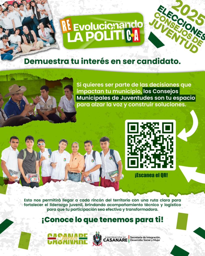 Con el objetivo de promover una nueva generación de liderazgo joven en el departamento, la Gobernación de Casanare lanza la iniciativa “Juventud con voz y poder: RE-volucionando la política”, una invitación abierta a los jóvenes interesados en postularse como candidatos a los Consejos Municipales de Juventud.