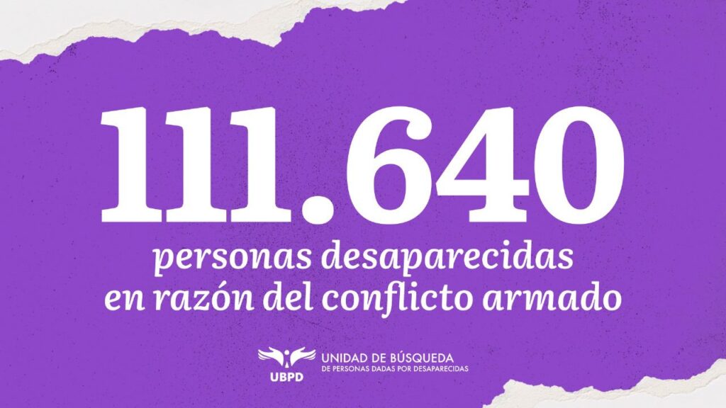 La Unidad de Búsqueda tiene un universo en construcción de 111.640 personas dadas por desaparecidas hasta el 1 de diciembre de 2016, fecha que dispone el mandato para la búsqueda. Sin embargo, y según el CICR, después de la firma del Acuerdo de Paz, hasta el 31 de diciembre de 2023 se han registrado 1476 casos nuevos de desapariciones.
