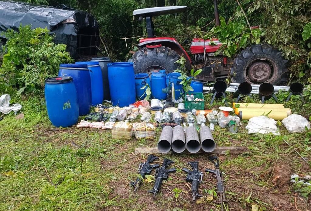 Se han neutralizado también más de dos toneladas de material explosivo y 98 medios de lanzamiento, con los cuales el ELN Frente de Guerra Oriental y el grupo armado organizado, GAO-r, Estructura 10 y 28 pretendían atentar contra la vida de las comunidades, la Fuerza Pública y la fauna de la región.