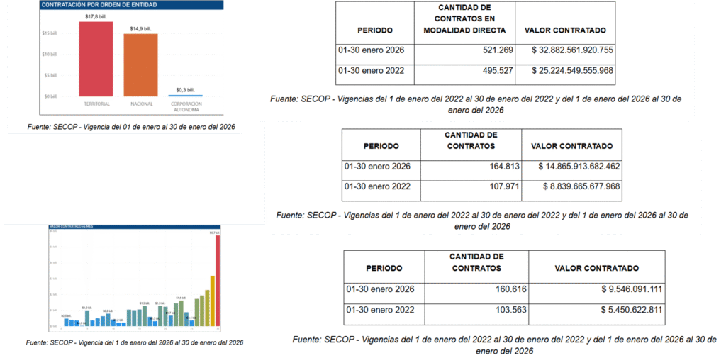 Solo en la jornada del 30 de enero se reportaron adjudicaciones por $5,7 billones, completando un consolidado mensual de $32,88 billones distribuidos en 521.269 contratos.