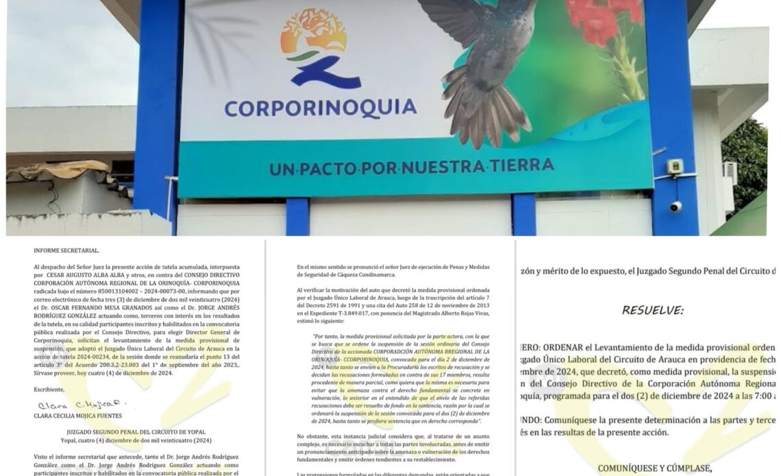 El Juzgado Segundo Penal del Circuito de Yopal revocó la medida cautelar que suspendía la sesión del Consejo Directivo de Corporinoquia, lo que permitirá que el proceso de elección del nuevo director de la entidad ambiental continúe.