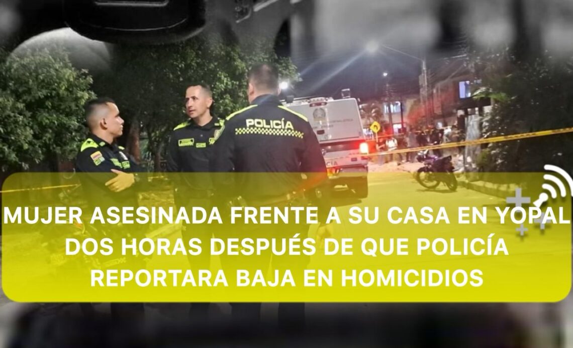 Una mujer fue asesinada el día inmediatamente anterior, viernes 18 de octubre en yopal, casanare, en un trágico incidente ocurrido alrededor de las 7:00 p.m., dos horas después de que la policía terminara una rueda de prensa en la que celebraba una reducción del 20% en los homicidios en la ciudad.