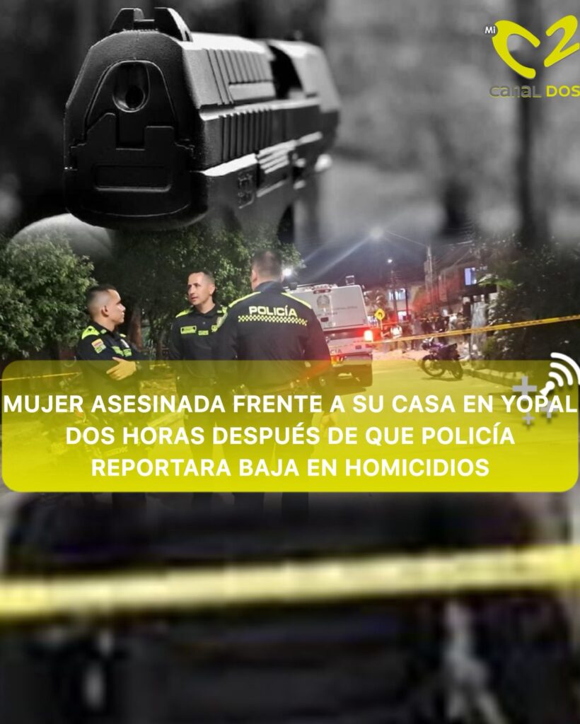 Una mujer fue asesinada el día inmediatamente anterior, viernes 18 de octubre en yopal, casanare, en un trágico incidente ocurrido alrededor de las 7:00 p.m., dos horas después de que la policía terminara una rueda de prensa en la que celebraba una reducción del 20% en los homicidios en la ciudad.