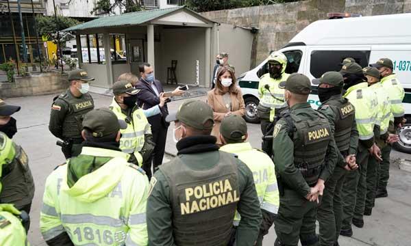 | Con un llamado a proteger siempre a la ciudadanía, respetar los derechos humanos y honrar la institución, la Vicepresidente Marta Lucía Ramírez, visitó los CAI de San Victorino y Telecom, en el centro de Bogotá, este martes. La alta funcionaria destacó el trabajo que hace la mayoría de la Fuerza Pública para salvaguardar la vida de los ciudadanos, pero lamentó que haya algunos miembros sin sentido de pertenencia, que estén deshonrando la institución e incumpliendo el compromiso de velar por la tranquilidad de los colombianos. «Nuestra gratitud, apoyo y cariño por la tarea que hacen ustedes en la Policía. Queremos recomendarles permanentemente hacer su tarea: protección a los ciudadanos, siempre con el máximo cumplimiento de la ley, respetando y velando por los derechos de cada colombiano, sabiendo que es una tarea difícil, abnegada y sacrificada. Una tarea que tienen que hacer siempre con convicción, que es la misma convicción que tenemos nosotros de servirle a nuestro país; es defender esta democracia, trabajar por una Colombia que algún día tenga todo el desarrollo, pero ese desarrollo lo vamos a tener con democracia», señaló la Vicepresidente. Y exhortó a los policías con los que estuvo reunida, a mantenerse firmes en el cumplimiento de sus deberes, sin excesos que afecten a toda una colectividad. «Reconocemos en la Policía una institución tremendamente importante, por eso cada uno de ustedes, tiene que poner el nombre de la policía muy en alto, siempre. Saber que, al cometer un delito, se afecta a toda la institución», enfatizó. Par finalizar, sostuvo que «ningún policía que viole la ley, representa la institución ni el sacrificio que hacen miles de uniformados honestos patrullando nuestras calles en la madrugada, para velar por el sueño tranquilo de los ciudadanos». |