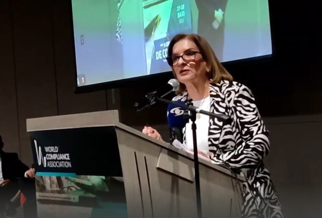 Durante el Segundo Congreso Nacional de Compliance y Control del Fraude Organizacional, la funcionaria advirtió que, en Colombia Estado y derecho y democracia, todas las autoridades, incluyendo el presidente de la república, deben obedecer las decisiones de la Corte Constitucional, máximo órgano que determina la legalidad del estado de derecho en nuestro país.
