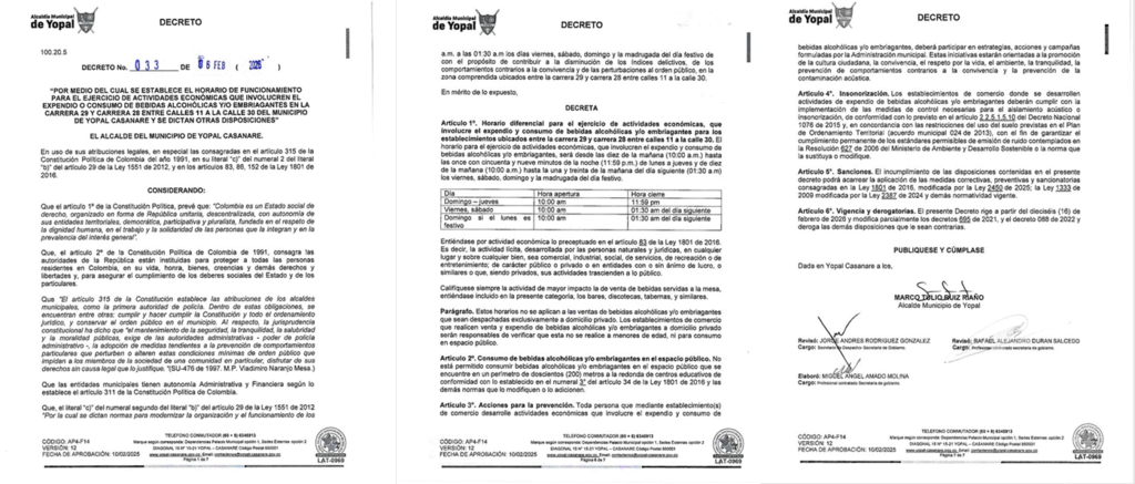 Estas disposiciones forman parte del Decreto 033 expedido el 6 de febrero de 2026 por la Administración municipal.