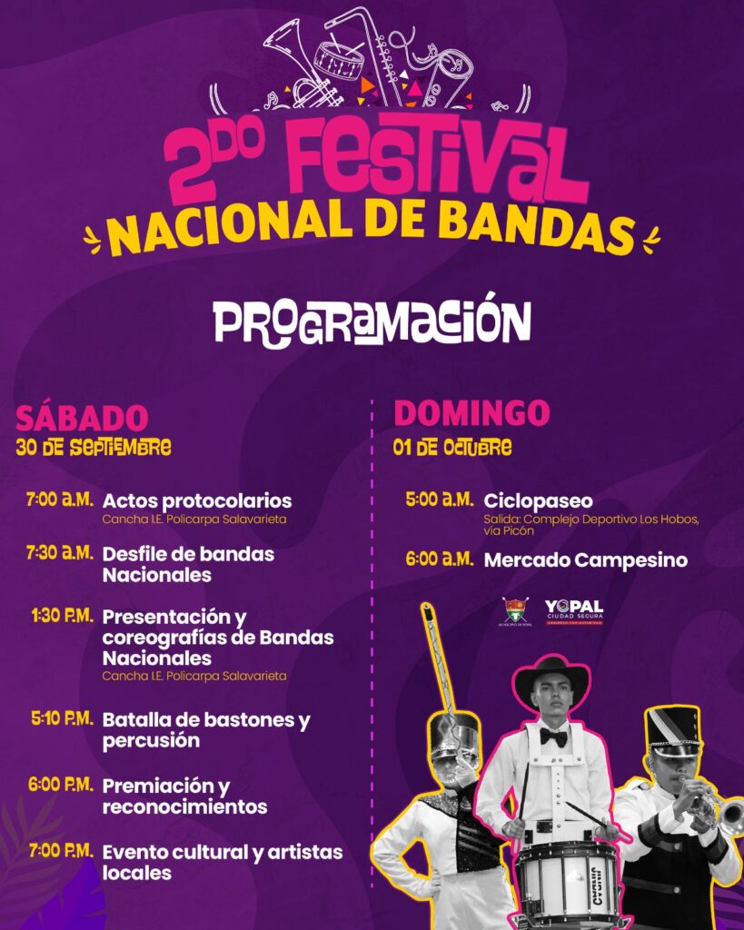 Varias dependencias de la Alcaldía de Yopal, entre las que se encuentran Educación, Cultura, Idry, Gobierno y Tránsito, han venido trabajando por más de dos meses, con las directivas de la institución educativa Policarpa Salavarrieta y la comunidad de Santa fe de Morichal, para organizar la segunda versión del Festival Nacional de Bandas.