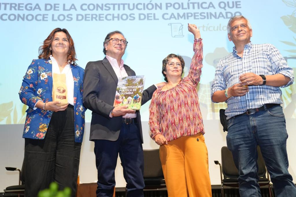Una invitación al movimiento campesino a que se manifieste pacíficamente a favor de la defensa de sus derechos, como base para la construcción de una paz con justicia social, formuló este miércoles el Presidente Gustavo Petro, durante el Acto de Entrega de la Constitución Política que reconoce Derechos al Campesinado.