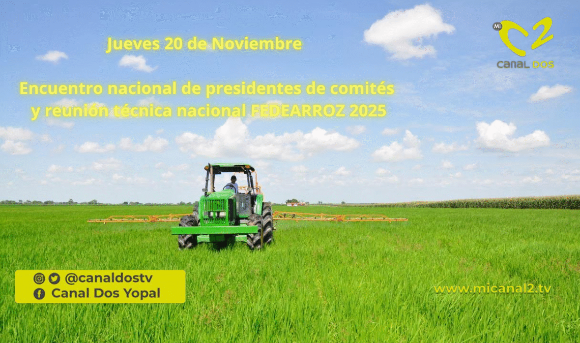 La Federación Nacional de Arroceros – Fedearroz, realizará el próximo jueves 20 de noviembre el ENCUENTRO NACIONAL DE PRESIDENTES DE COMITÉS Y REUNIÓN TÉCNICA NACIONAL FEDEARROZ 2025, donde se darán cita en el Hotel Grand Hyatt de Bogotá a partir de las 08:00 am, los presidentes de los Comités de Arroceros a nivel nacional, la Junta Directiva del gremio y el equipo de investigadores y técnicos que tiene a su cargo la ejecución de los programas de investigación y transferencia de tecnología en las diversas regiones productoras del grano.