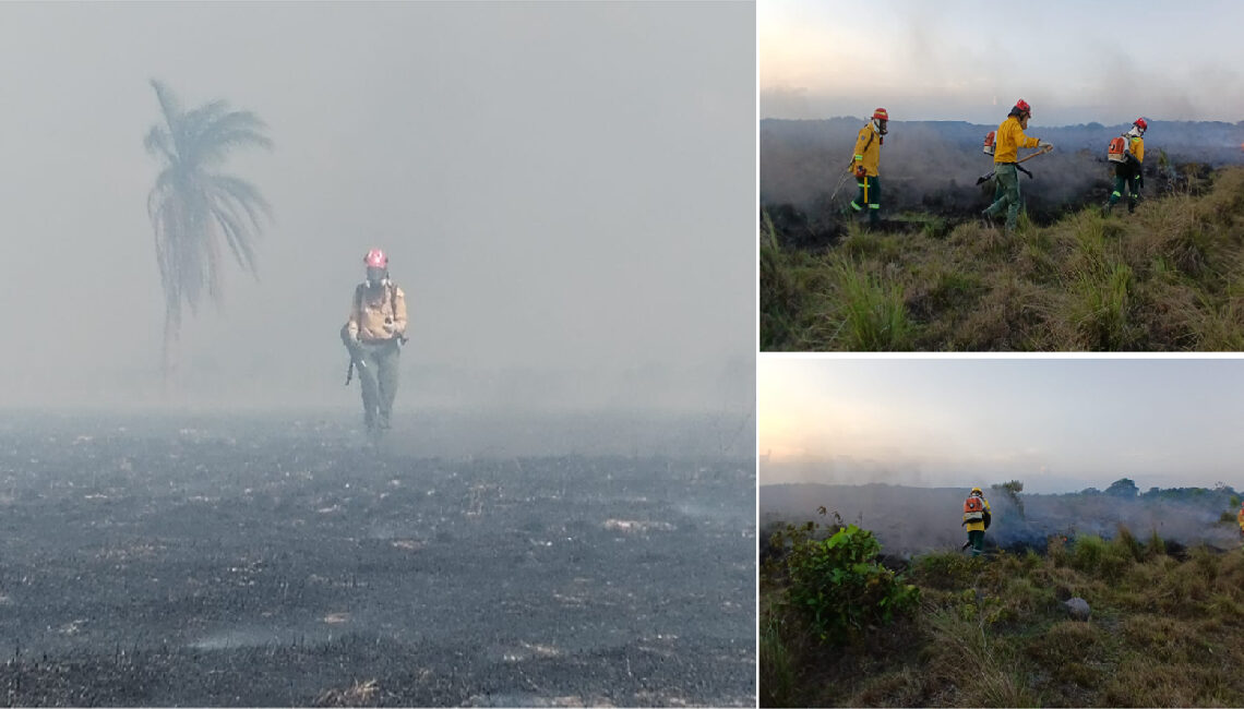 En la finca Pentágono, trabajadores locales emplearon tractores para realizar guardarrayas de emergencia, una medida crítica para evitar que el desastre ambiental continuara expandiéndose.