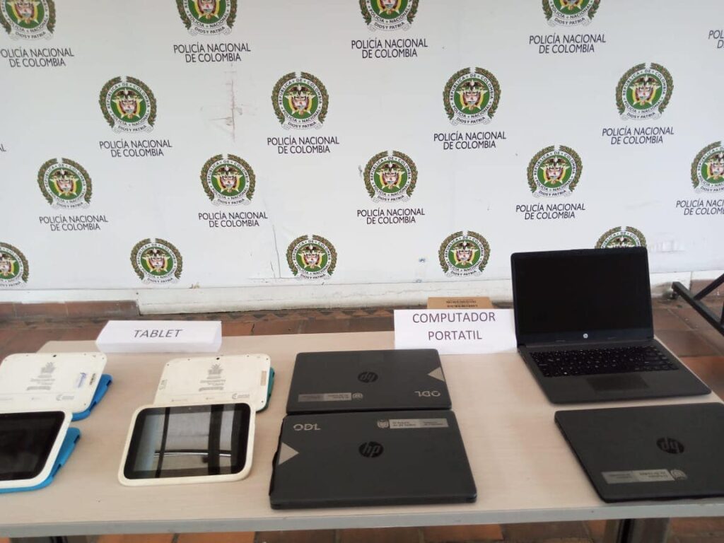 En el desarrollo de la investigación, son allegados tres equipos más, logrando así la recuperación de cuatro computadores portátiles pertenecientes al plantel educativo. Por otro lado, personal del Modelo Nacional de Vigilancia Comunitaria por Cuadrantes de la Estación de Policía Monterrey, logra la ubicación de cuatro Tablet del programa Computadores para Educar del Gobierno Nacional, las cuales habían sido abandonadas en un lote baldío, ya que la persona que las trasportaba, al notar la presencia policial, se deshizo de los elementos digitales y huyo del lugar.