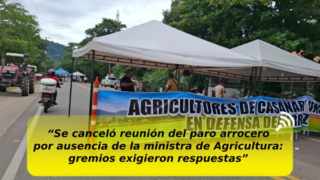 La esperada reunión programada para este jueves 17 de julio con el fin de buscar soluciones al paro arrocero en Colombia no se realizó, debido a la inasistencia de la ministra de Agricultura, Martha Viviana Carvajalino Villegas.
