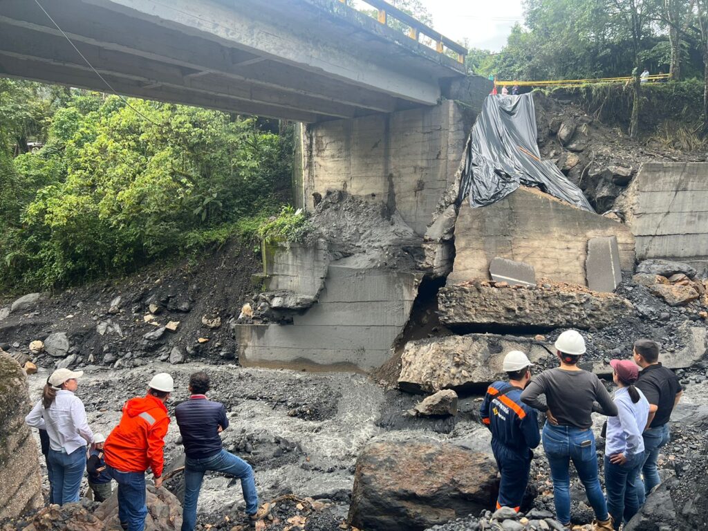 • Los técnicos del Invías, junto con el contratista y la interventoría, definieron el cierre inmediato de la vía para todo tipo de vehículos, la instalación de bolsacreto para la protección de los estribos del puente, instalación de un puente militar y el inicio de estudios y diseños para contar con una solución definitiva.