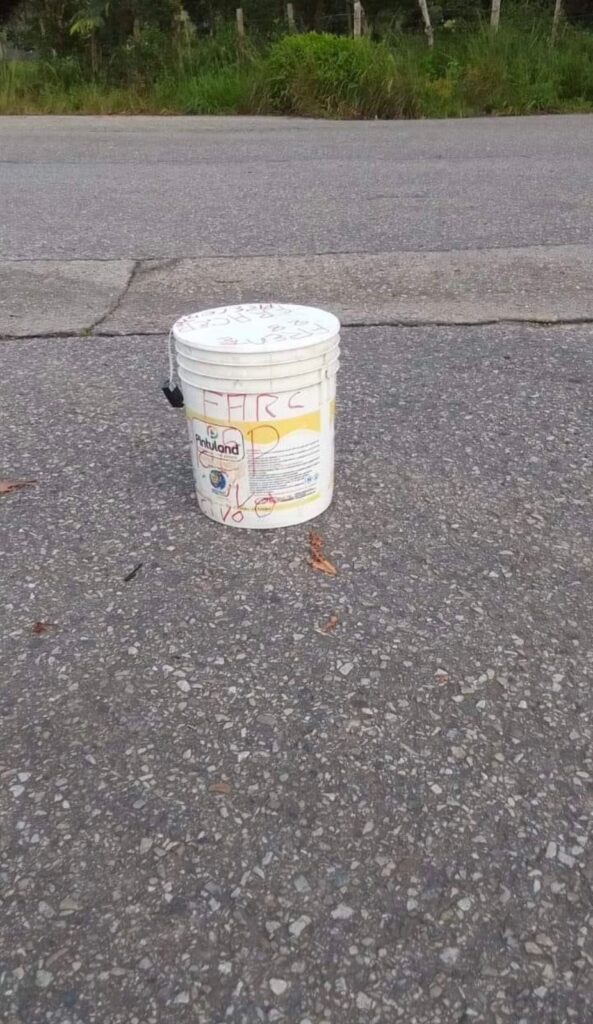 Un recipiente abandonado en la vía que conduce de El Morro a La Vega con un mensaje que parecía provenir de las disidencias de las FARC, desató la movilización de los cuerpos de seguridad al sospechar que podría tratarse de un artefacto explosivo.