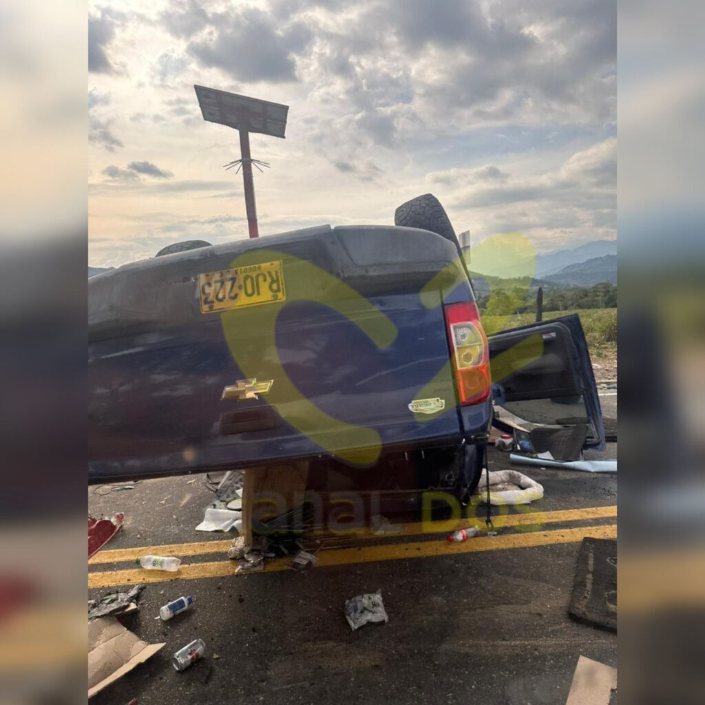 La situación se produce cuando el conductor de la camioneta Chevrolet Dimax, identificada con las placas RJQ223, Nury de Jesús Vahos Velilla, intentó adelantar un vehículo, sin percatarse que otro carro venía en sentido contrario y al tratar de maniobrar hacia su carril, sufrió un aparatoso volcamiento, dejando un saldo trágico, una mujer muerta y cuatro heridos, incluyendo al conductor.