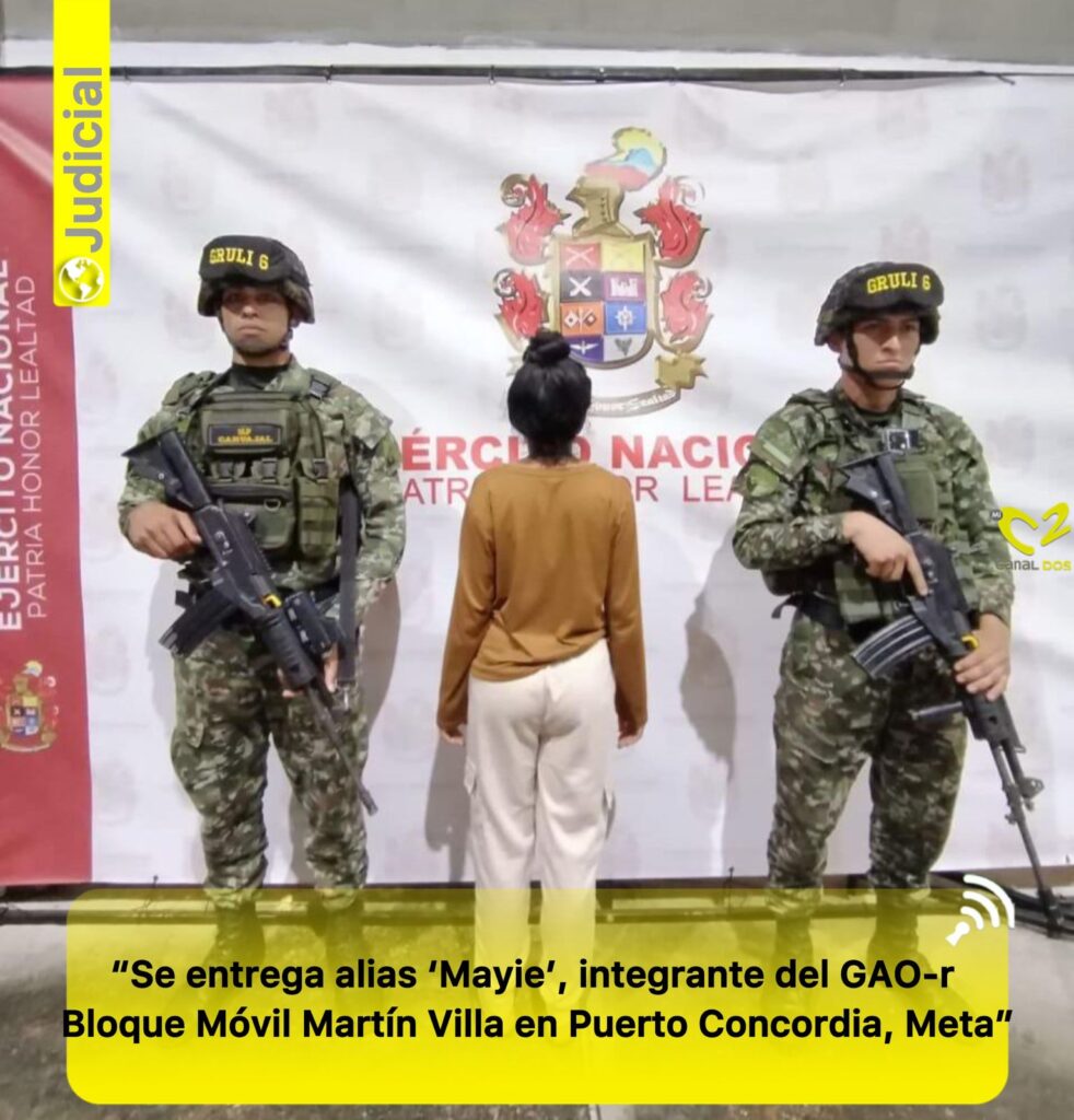 En el municipio de Puerto Concordia (Meta), se produjo la entrega voluntaria a las autoridades de alias ‘Mayie’, presunta integrante del GAO-r Bloque Móvil Martín Villa.
