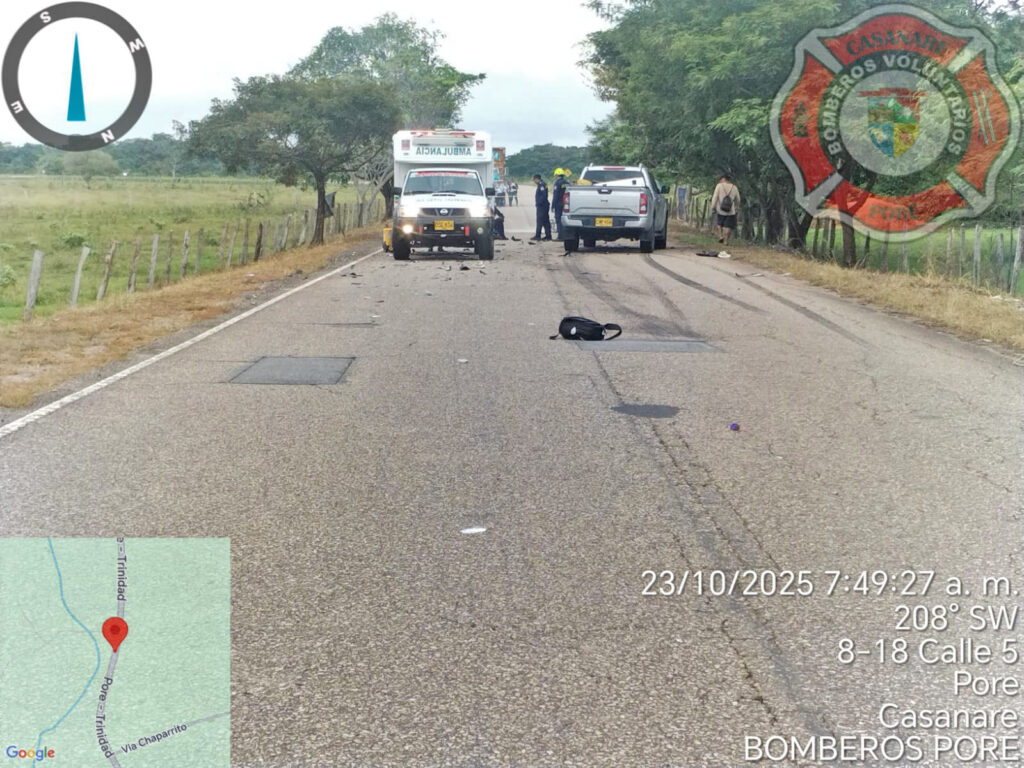 El Cuerpo de Bomberos Voluntarios de Pore atendió la emergencia y realizó el cierre temporal de la vía mientras se adelantaban las labores de remoción y aseguramiento del lugar. El otro vehículo involucrado sufrió graves daños en su parte delantera.