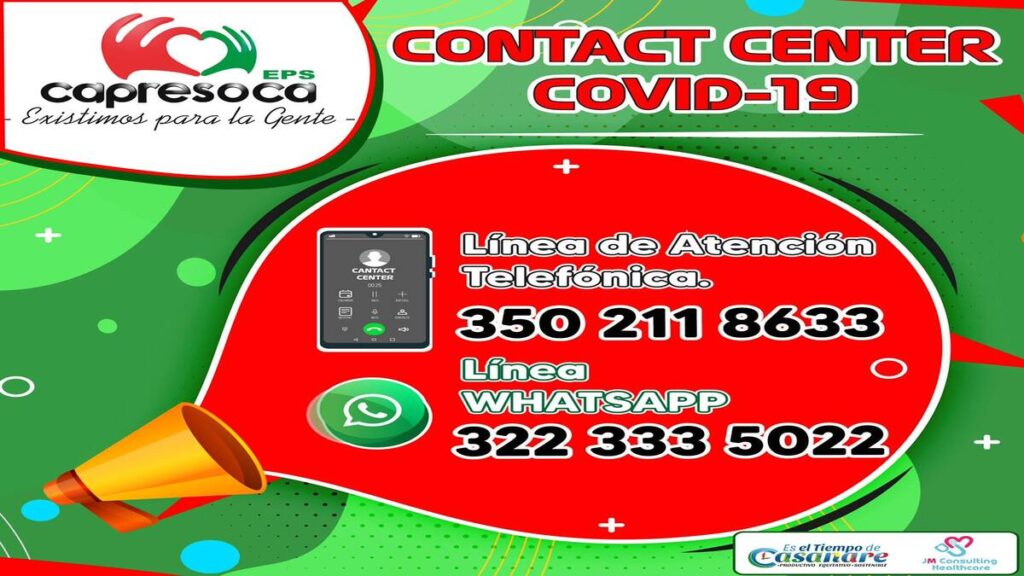Para ello cuenta con su propio Contac Center dispuesto para la atención de la emergencia COVID-19, 24 horas del día, 7 días a la semana en la línea de teléfono 3502118633 y línea de WhatsApp 3223335022