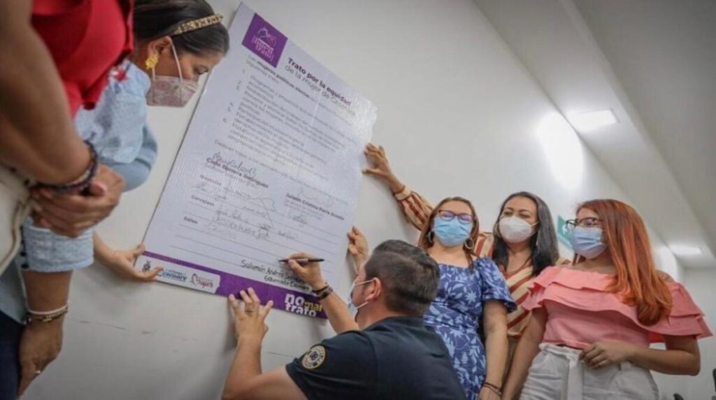 Como parte de la estrategia denominada Hagamos Un Buen trato, No Al Maltrato, el gobernador Salomón Sanabria, en compañía de la gestora social Cielo Barrera, se reunieron en el despacho departamental con mujeres líderes políticas para formar el Trato por la Equidad de la Mujer.