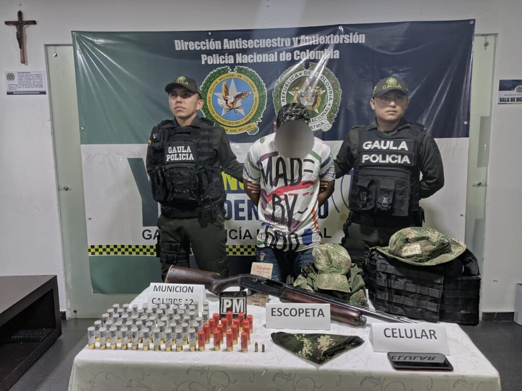 La diligencia al inmueble tuvo lugar en el barrio Nueva Habita de Yopal, donde los uniformados hicieron efectiva la captura de alias “El menor” de 21 años de edad y la incautación de un arma de fuego tipo escopeta Remington con 74 cartuchos de diferentes calibres y prendas de uso restrictivo de las fuerzas militares.