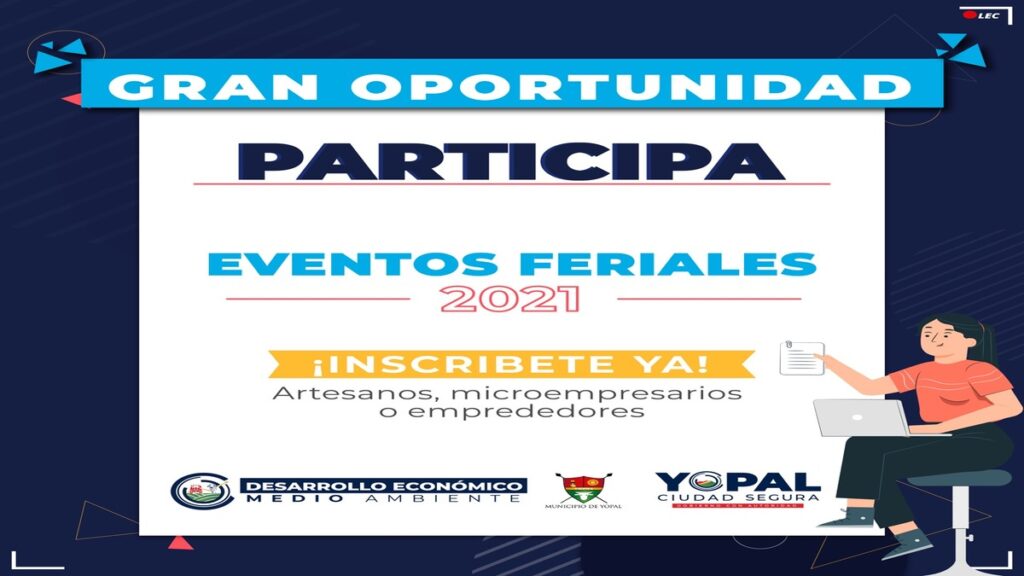 Dando continuidad a su plan de reactivación económica en Yopal, la Secretaría de Desarrollo Económico y Medio Ambiente, en cabeza de Jimmy Barrera, lanza convocatoria para la participación de eventos feriales 2021. Esta oferta está enfocada en mercados campesinos, ferias microempresariales y otros eventos para el desarrollo económico.