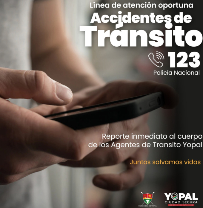 Para disminuir el lapso en la respuesta del cuerpo de los Agentes de Tránsito frente a los siniestros viales en la ciudad de Yopal, se realiza el enlace con la línea de emergencia de la Policía Nacional 123, de esta manera el reporte se hace directo y la unidad de turno se movilizará para atender la urgencia vial.