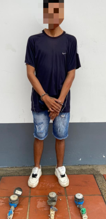 Personal del cuadrante mediante registro y control, ubica a este ciudadano en la calle 24 con carrera 11 del Barrio los Álamos logrando la captura de este ciudadano conocido como “El contador” quien llevaba tres cajas de cartón que al ser verificadas por los uniformados en su interior tenía tres contadores de agua avaluados en $1´800.000 pesos.